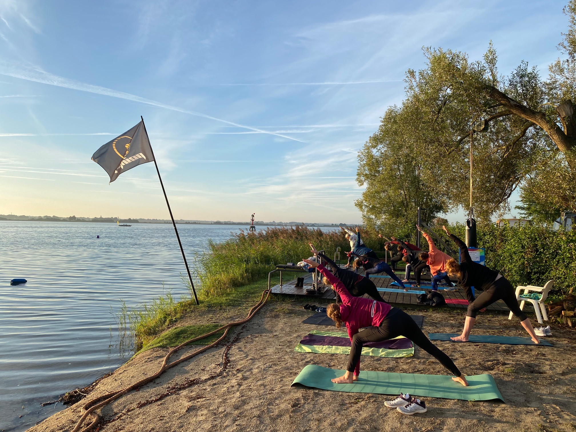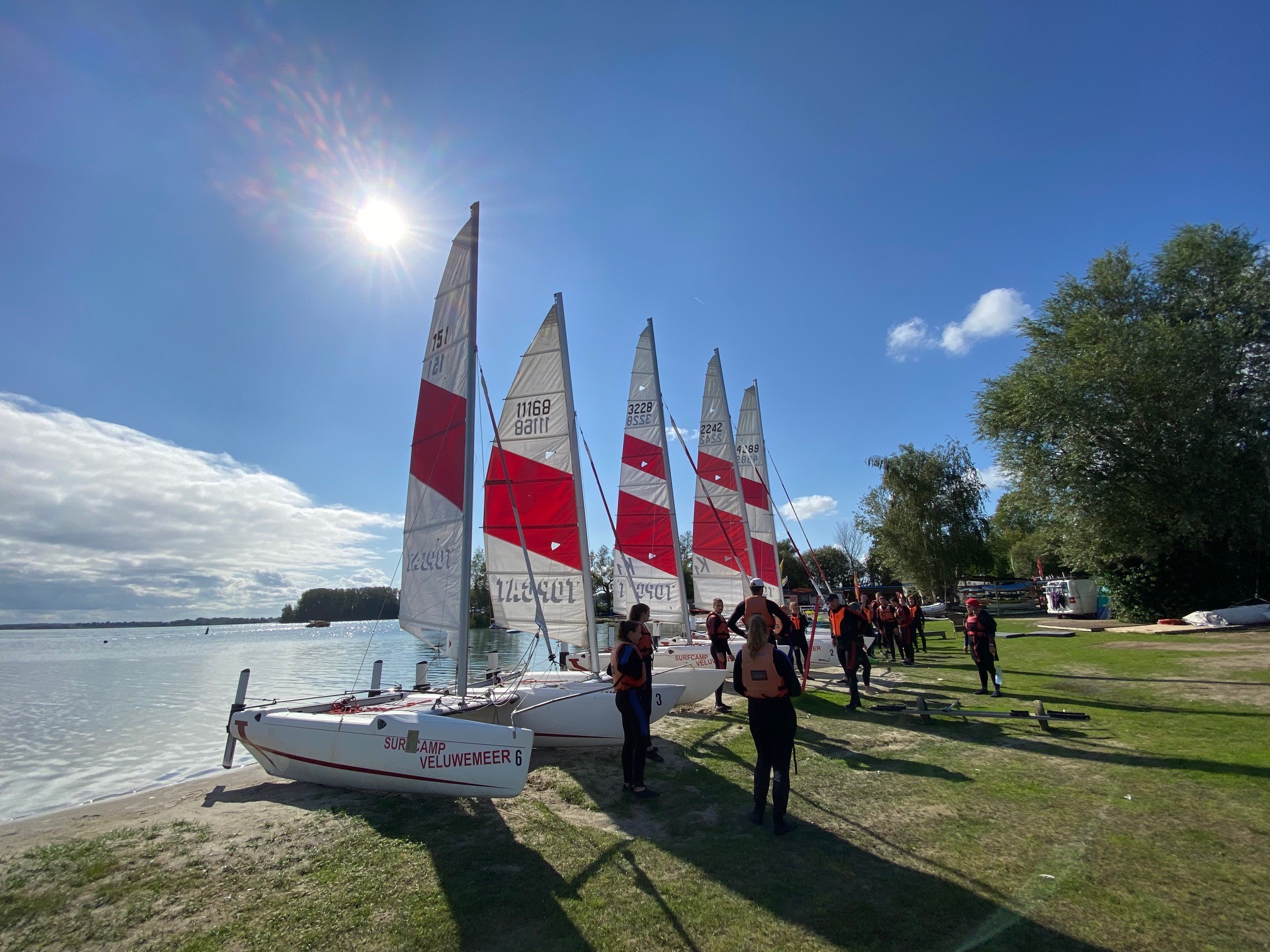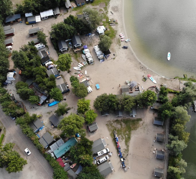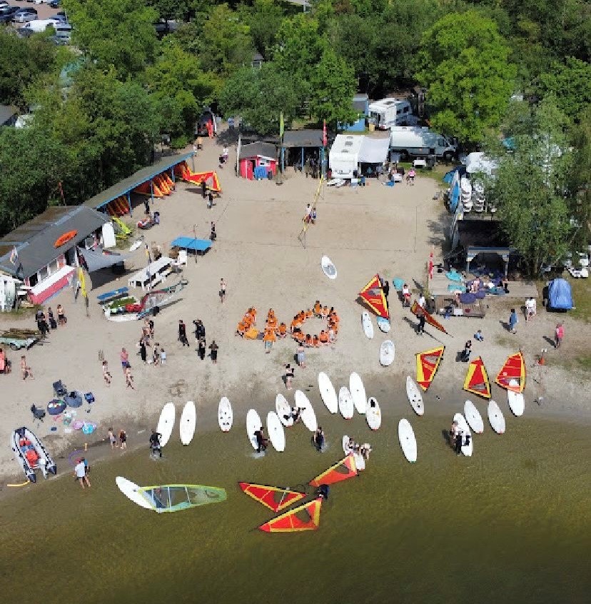 Unser Camp liegt auf dem Polder Flevoland am Veluwemeer, einem etwa 2 km breiten Binnenmeer südlich des Ijsselmeeres, mitten im Herzen der Niederlande. In einer geschützten Bucht am Aqua Centrum Bremerbergse Hoek findet ihr unser Gelände mit einem großen Sandstrand. Das Stehrevier bietet perfekte Bedingungen für alle Formen des Wassersports.